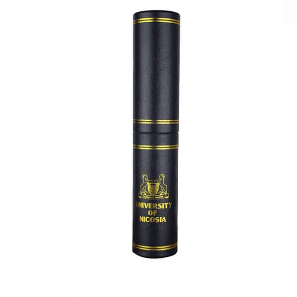 Leatherette exterior has long been used in traditional rectangular diploma holders and certificate folders. Need keeping that leatherette look while requiring full color printing? This leatherette certificate tube is the choice. By applying specialty paper, the paper certificate tube instantly gets a leatherette look.